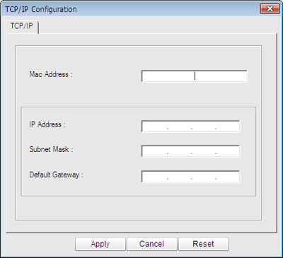 (الثالثة من اليسار) في الإطار SetIP لفتح إطار تكوين TCP/IP.