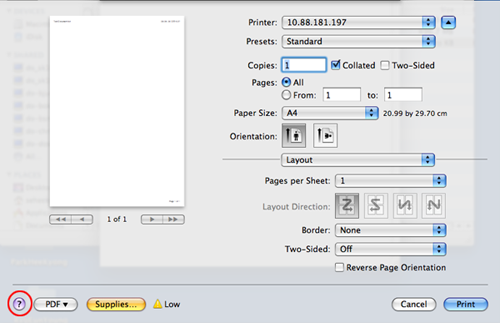 Tisknete-li z počítače Macintosh, je třeba zkontrolovat nastavení ovladače tiskárny v každé používané aplikaci. Při tisku z počítače Macintosh postupujte takto: