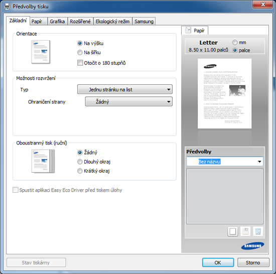 Vyberte další možnosti a klepněte na tlačítko Výchozí nastavení ovladače tiskárny můžete obnovit výběrem možnosti v rozevíracím seznamu . |